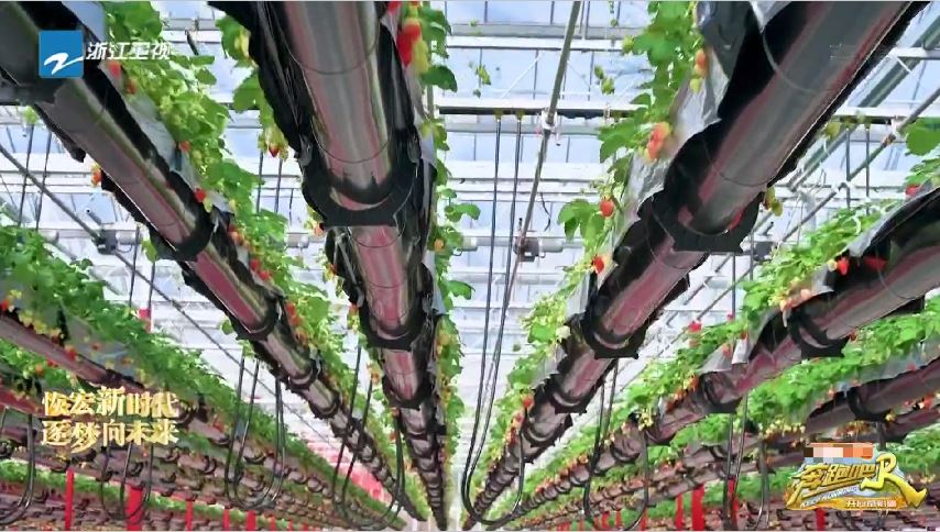 除了自然风光,充满科技感的现代化新农村也是给观众留下深刻印象的重要记忆点,引起了数次热议。建德大同镇的高标准示范农田,无人收割机、植保无人机等器械的在田中忙碌运行,保障高产并实现了自动化,草莓大棚里则全部应用上先进的悬空式草莓栽培技术。靠着杂交培育技术,大同镇还种上了功能性低糖米,当地农作物的市场竞争力十足,生动诠释着何为“科技兴农”。