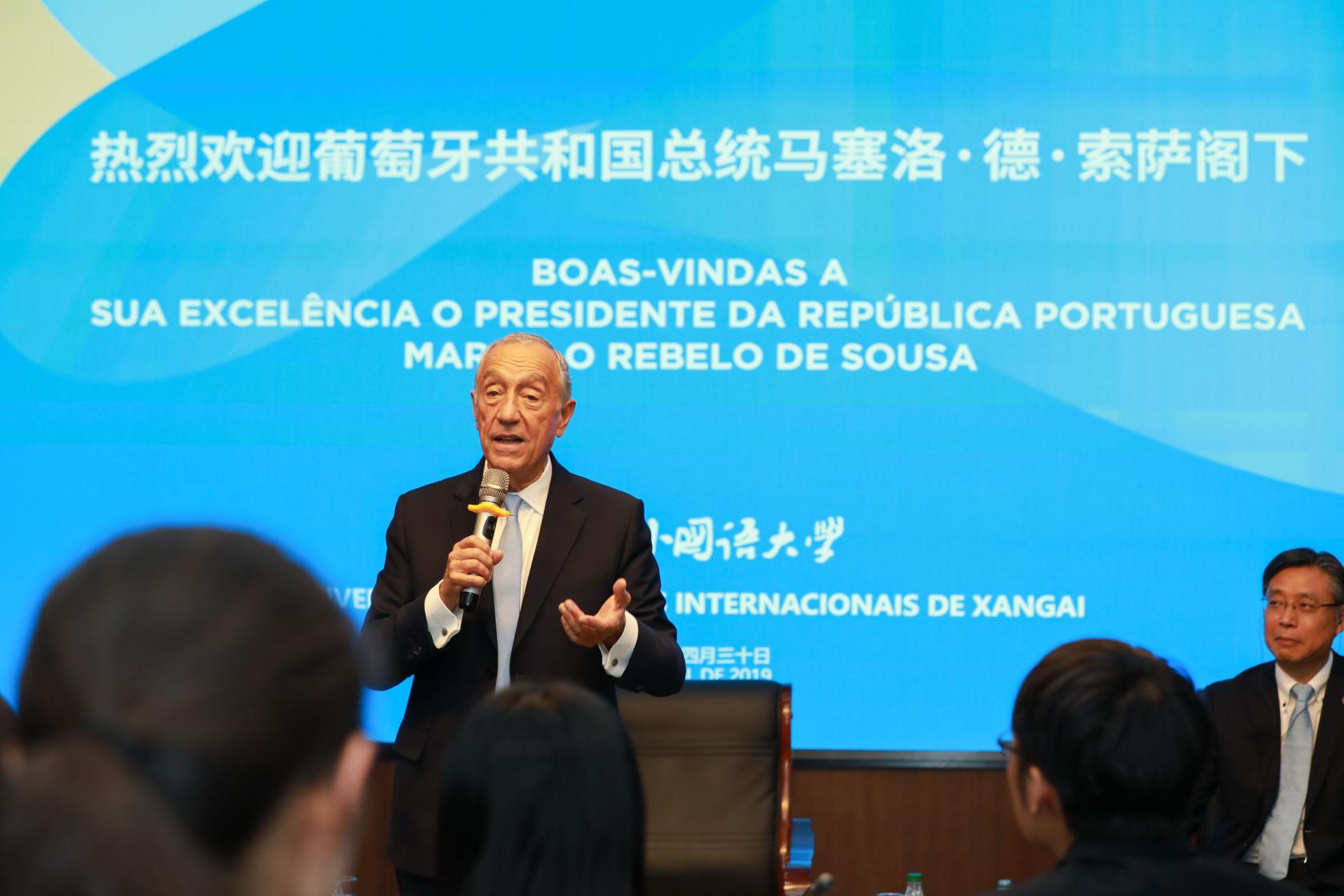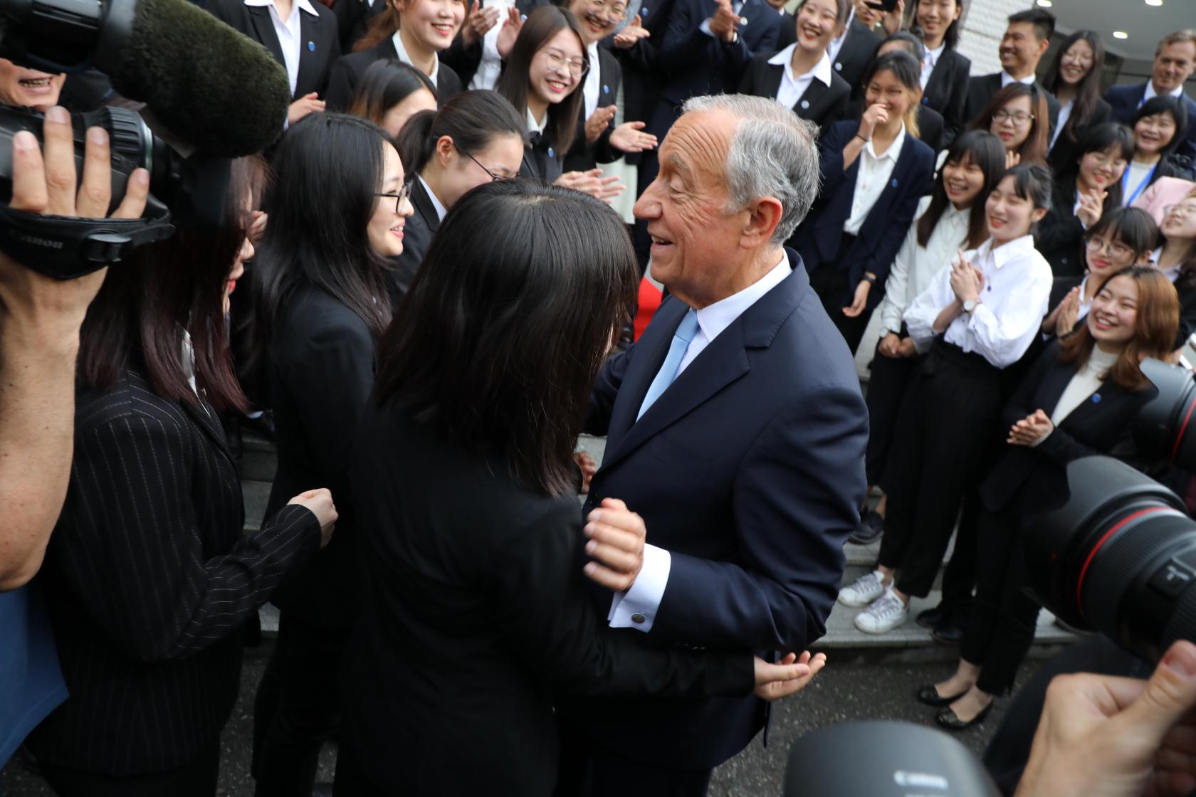 正在中国进行国事访问的葡萄牙共和国总统马塞洛·德·索萨今天率团到访上海外国语大学,与上外师生亲切交流并为上外即将到来的70周年校庆送上祝福。