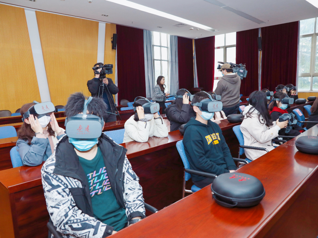 戴上VR设备观看VR+8K全景式影片《遵义会议》,身临其境感受中国近代史上伟大的转折点——遵义会议,上海立信会计金融学院的大学生们,体验了一次沉浸式的党史学习。