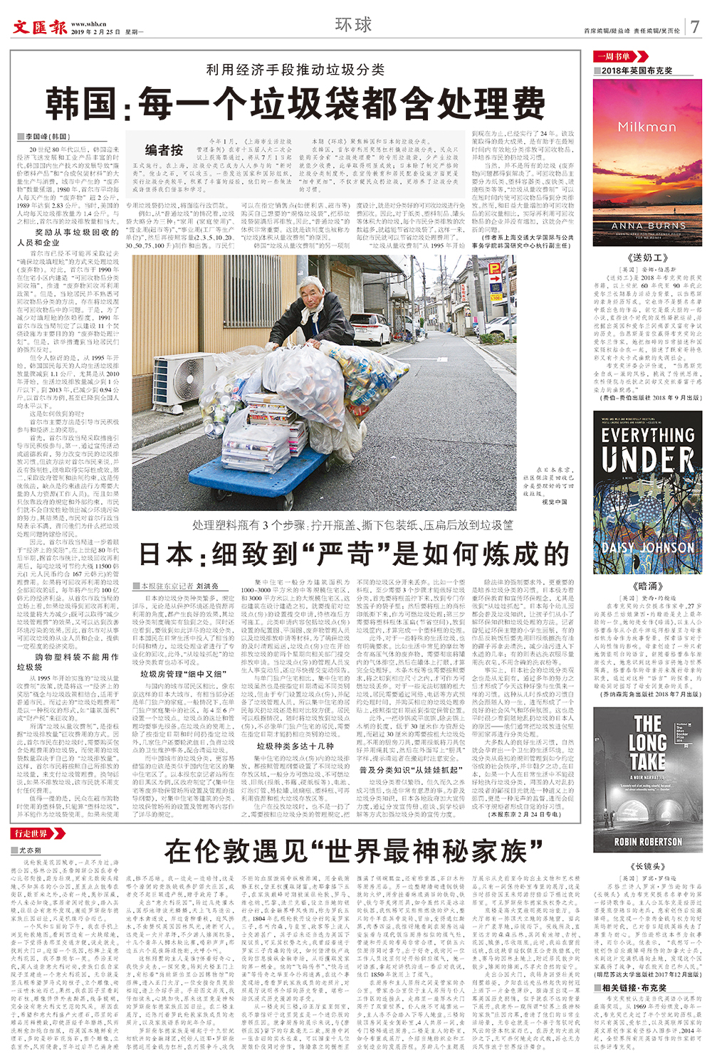 今日环球版刊发文章《韩国:每一个垃圾袋都含处理费》。在韩国,首尔市利用奖惩杠杆撬动垃圾分类,民众只能购买含有“垃圾处理费”的专用垃圾袋,少产生垃圾就能少收费,此举取得明显成效;日本除了制定严格的垃圾分类制度外,在宣传教育和居民配套设施方面更是“细中更细”,不仅方便民众扔垃圾,更培养了垃圾分类的习惯。>>详情