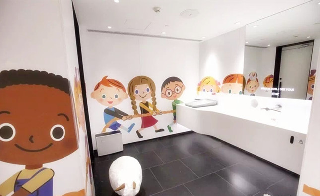 最后,这是上海K11里的网红厕所。它最贴心的设计,是专辟了一间“家庭间”,可供一家四口同时使用,绝对是二胎友好型厕所。
