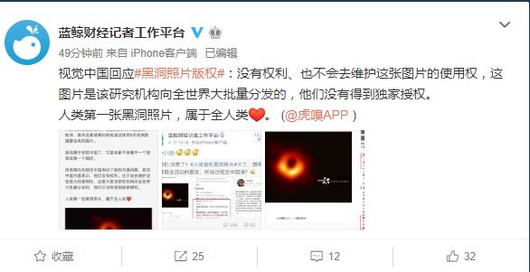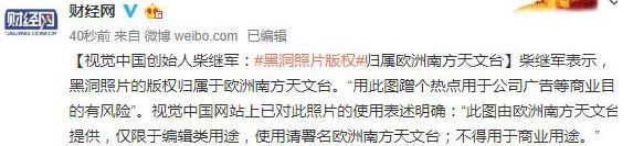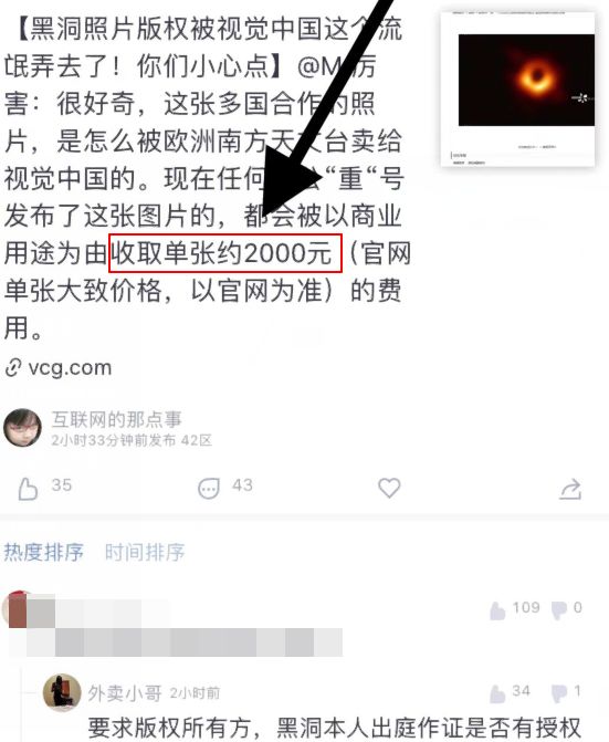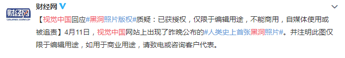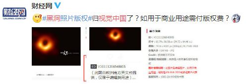 今天上午,“黑洞照片版权归视觉中国了”的消息在网上刷屏。