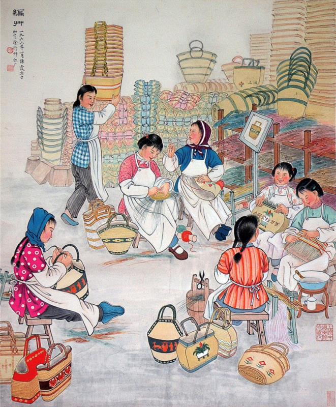 编竹(国画) 周鍊霞 作于1966年选自上海中国画院“火红的年代”特展
