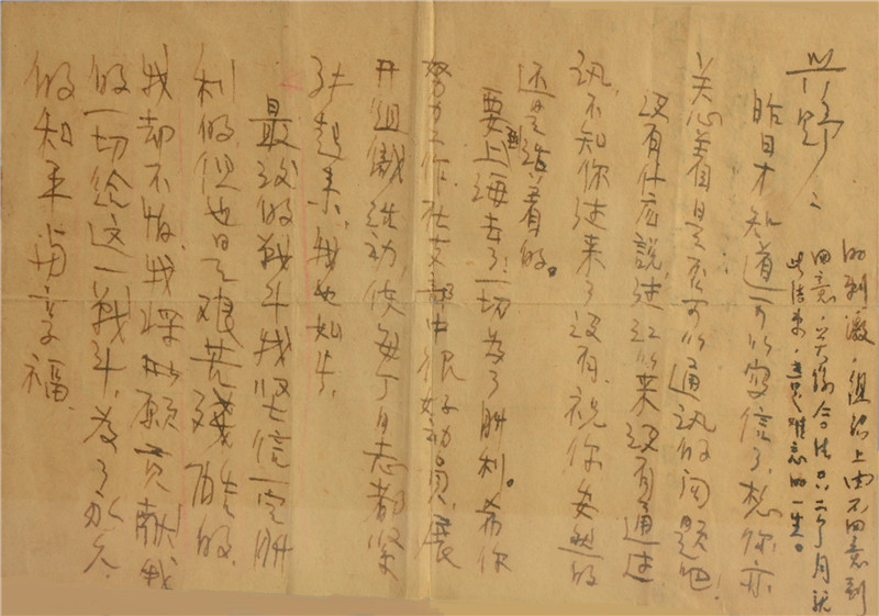 在解放上海战役中,张勇担任中国人民解放军第29军87师260团三营副教导员。而他刚刚新婚两个月的妻子胡兴野虽然也在29军87师,彼此却很难见面。张勇写这封信时并不知道妻子是否已过江,信中祝愿妻子“安然的还是活着的”。