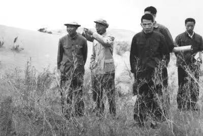 1963年9月赴宁夏视察沙坡头地区植物固沙试验基地,左起依次为李鸣岗、竺可桢、黄秉维