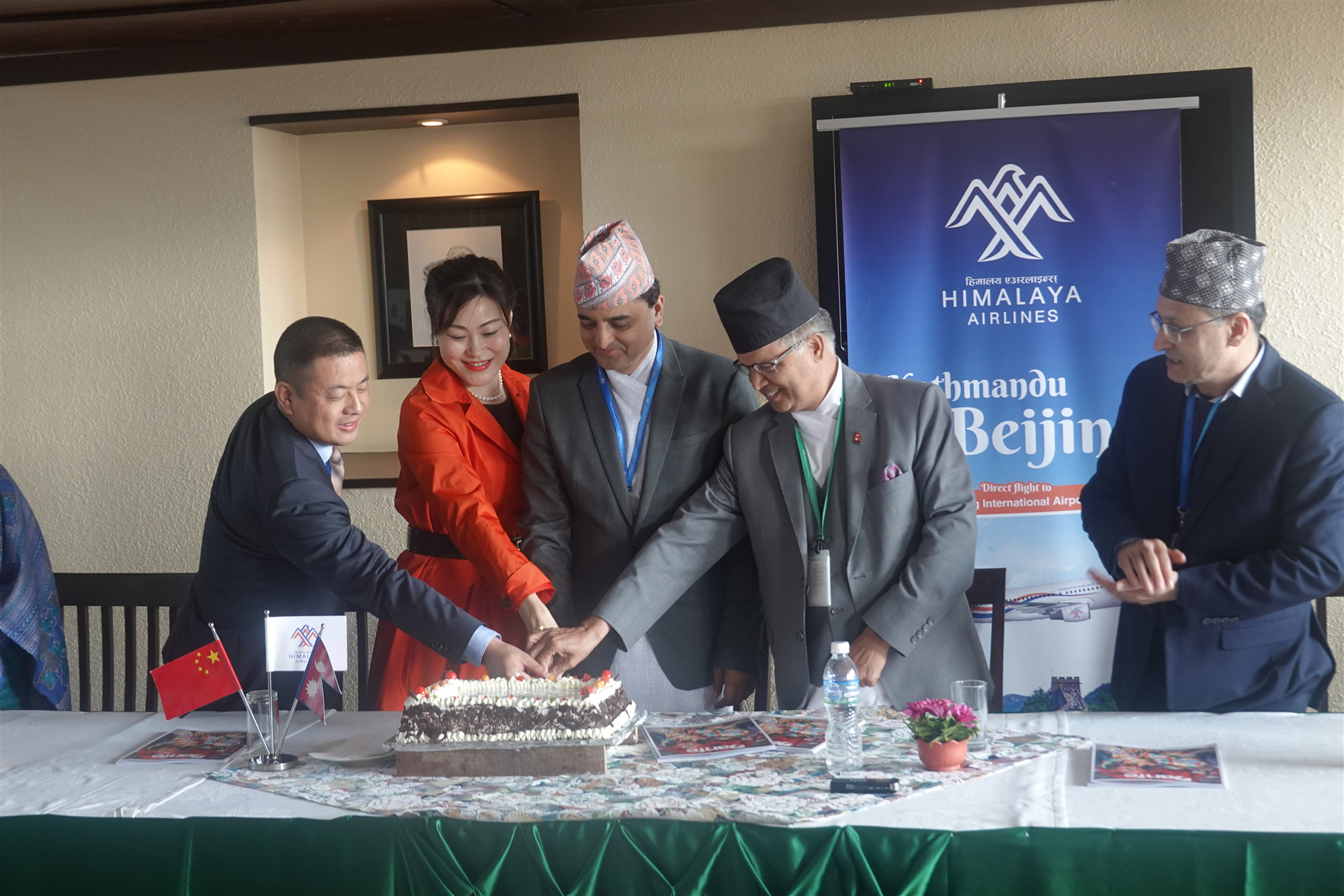 尼泊尔文化、旅游与民航部部长巴特拉伊,中国驻尼泊尔大使侯艳琪,喜马拉雅航空公司总裁周恩永等参加了首航仪式。