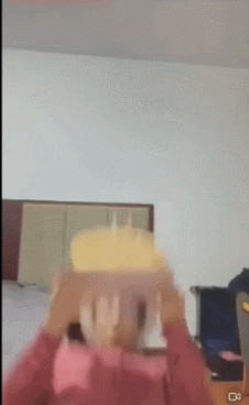 更戏剧性的是,蛋糕竟然全部扣在了自己的脸上,实在是逗趣+逗逼。
