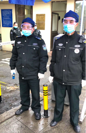 寒风中,保安亦坚守防疫线