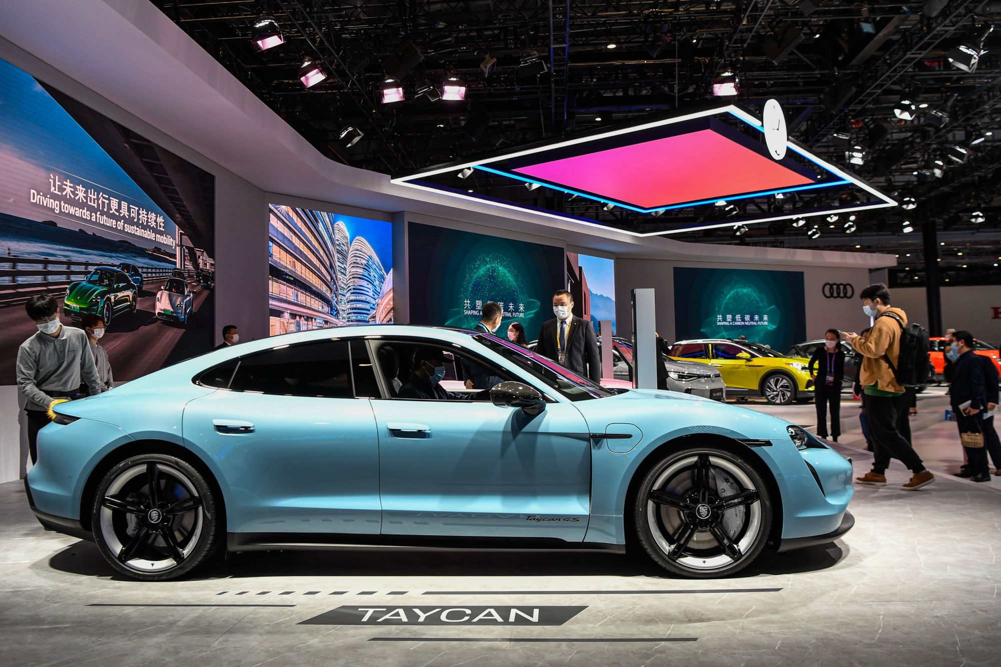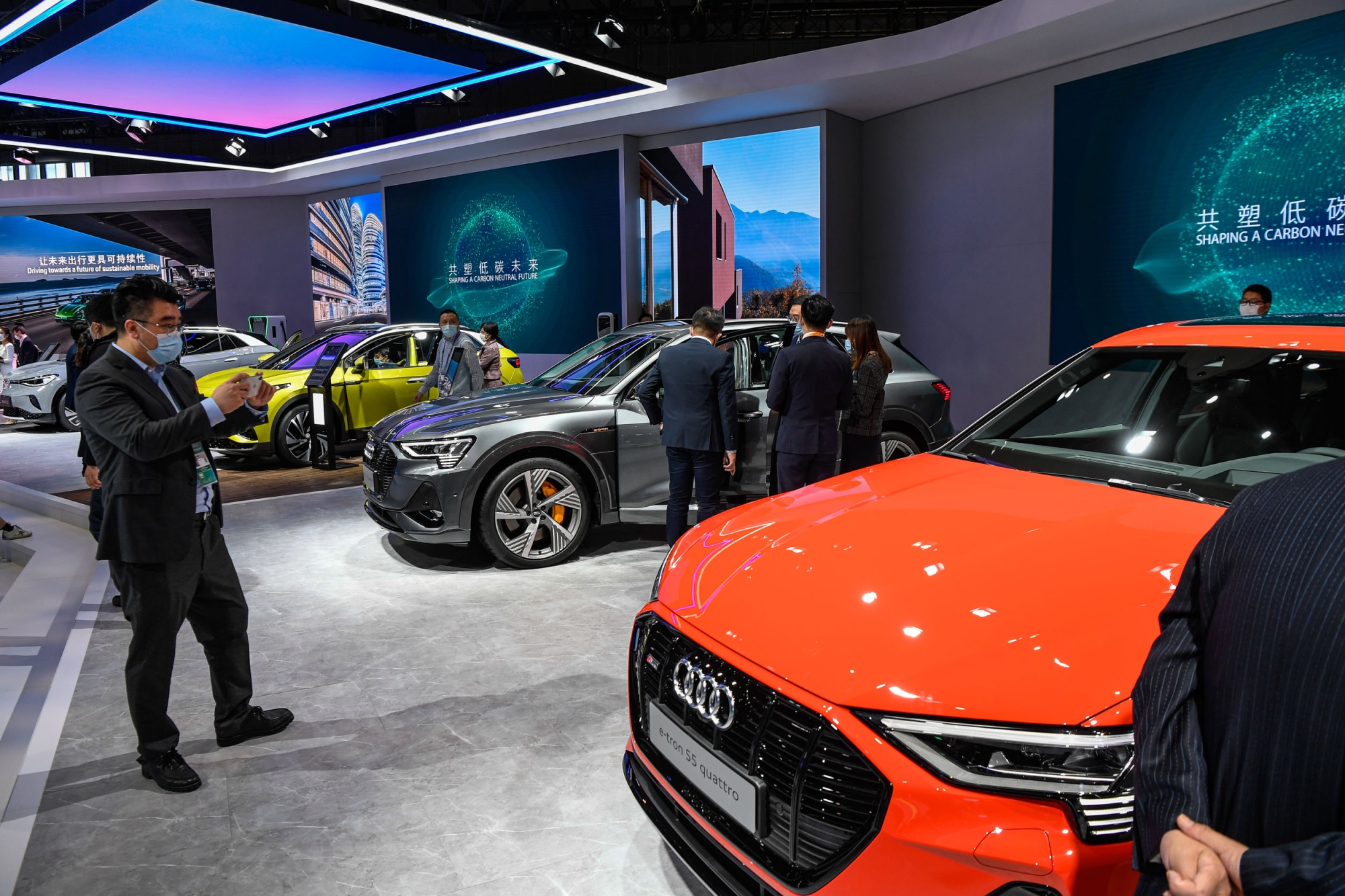 ▲奥迪大众保时捷展台的新能源汽车吸引了众多参观者。
