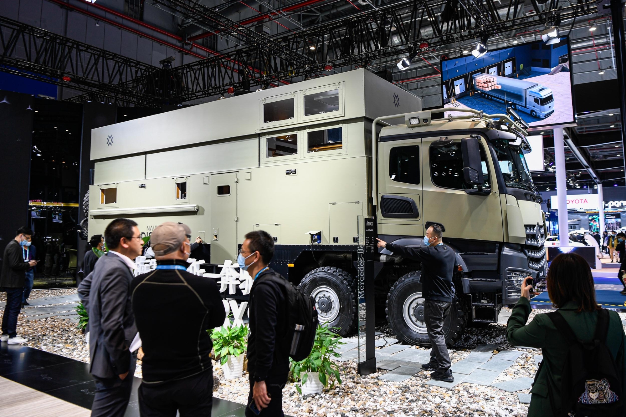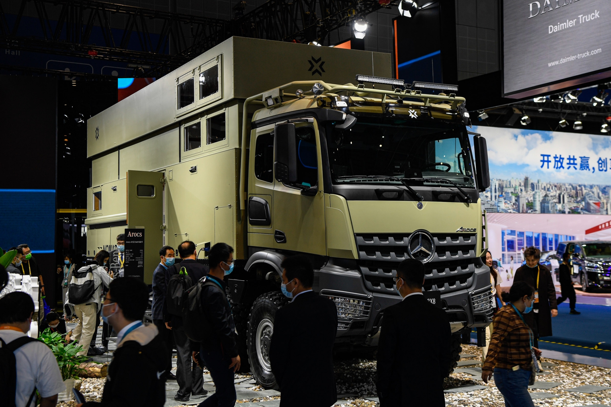 ▲展车中的大块头!戴姆勒带来了基于梅赛德斯-奔驰8x8卡车底盘阿洛斯(Arocs)打造的全地形豪华旅居车,吸引参观者驻足。