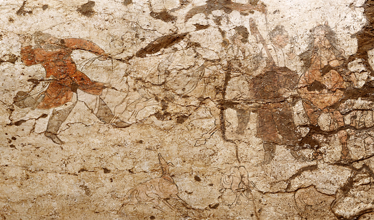 唐康善达墓墓道西壁壁画“胡人驯马图”