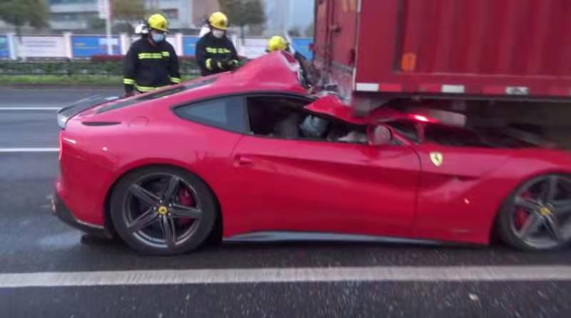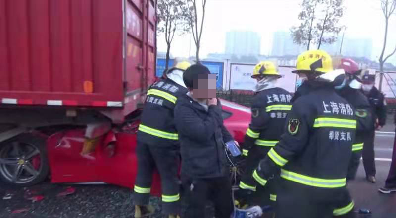 视频 | 法拉利跑车追尾一辆厢式货车,司机被困驾驶室,消防紧急救援