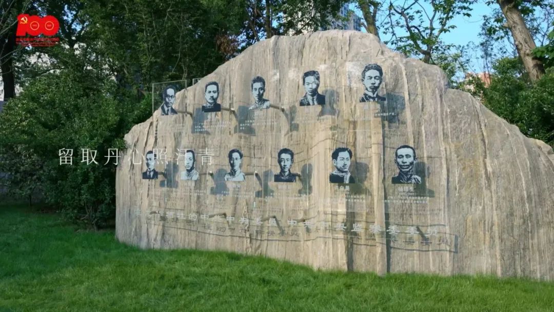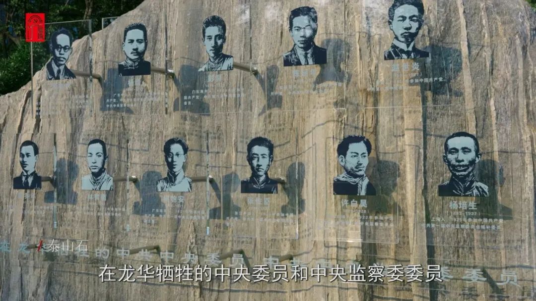在这块像山一样厚重的泰山石上,展示的是11位在龙华牺牲的中央委员和中央监察委委员。在新中国成立前中国共产党一共产生了171位中央委员,其中有42人牺牲,这里牺牲了7位,占了六分之一。新中国成立前中央监察委员10位,8位牺牲者里,在这里牺牲了4位,占了二分之一。