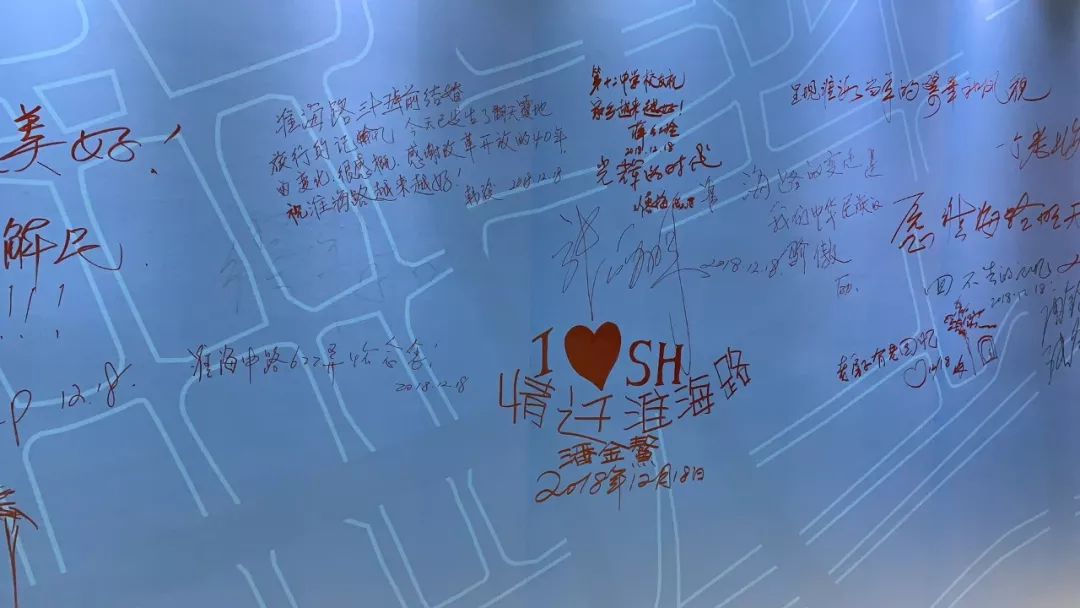 开展以来,已有众多市民前往观展,并且在“未来跃迁”板块的互动墙上留下了自己的感想,有感动、有回忆,也有对淮海路未来的期望!