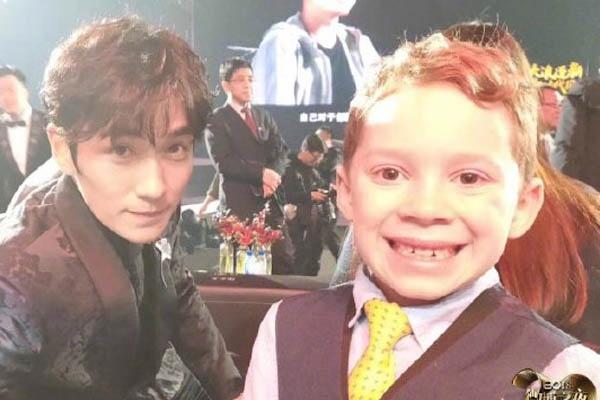 2018“微博之夜”上“假笑男孩”Gavin Thomas无疑成了最火的童星,众多艺人见到他都要与之合影。
