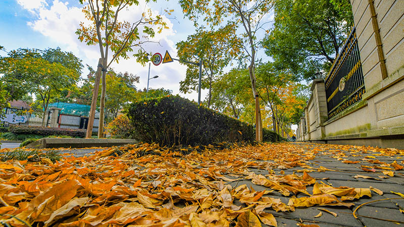 秋来,叶落,申城街头再度迎来最美落叶季,落叶不扫景观道已再度开启。