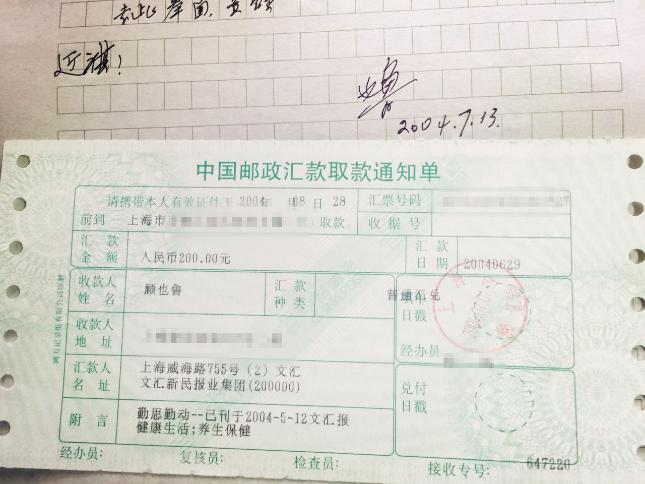 | 顾也鲁和一笔穿越12年的稿费退款 | 文汇信笺 | |