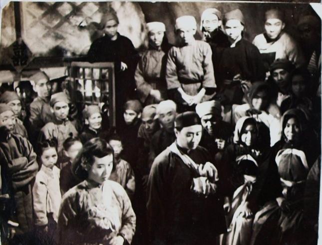 顾也鲁热爱电影事业,但他更爱国,他是一位向往进步、正直的艺术家。在他家的客厅里挂着两幅照片,他不止一次地向我讲起这两张照片的故事: