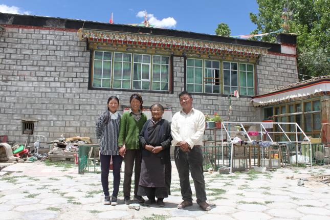 从村口向东,沿着乡间小路,记者来到巴顿(巴桑顿珠的昵称)的家。一个大院,一幢两层楼房,典型的藏乡民居。屋顶,一面五星红旗飘扬。