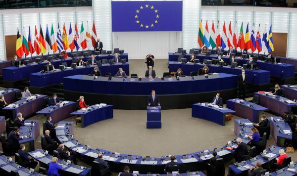 ▲10月19日,莫拉维茨基在欧洲议会发言。 | 新华社发