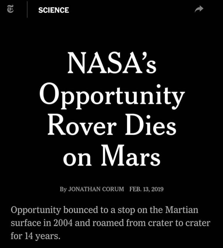 | 呼唤800次无果,NASA宣布在火星工作15年的机遇号正式“死亡” | |