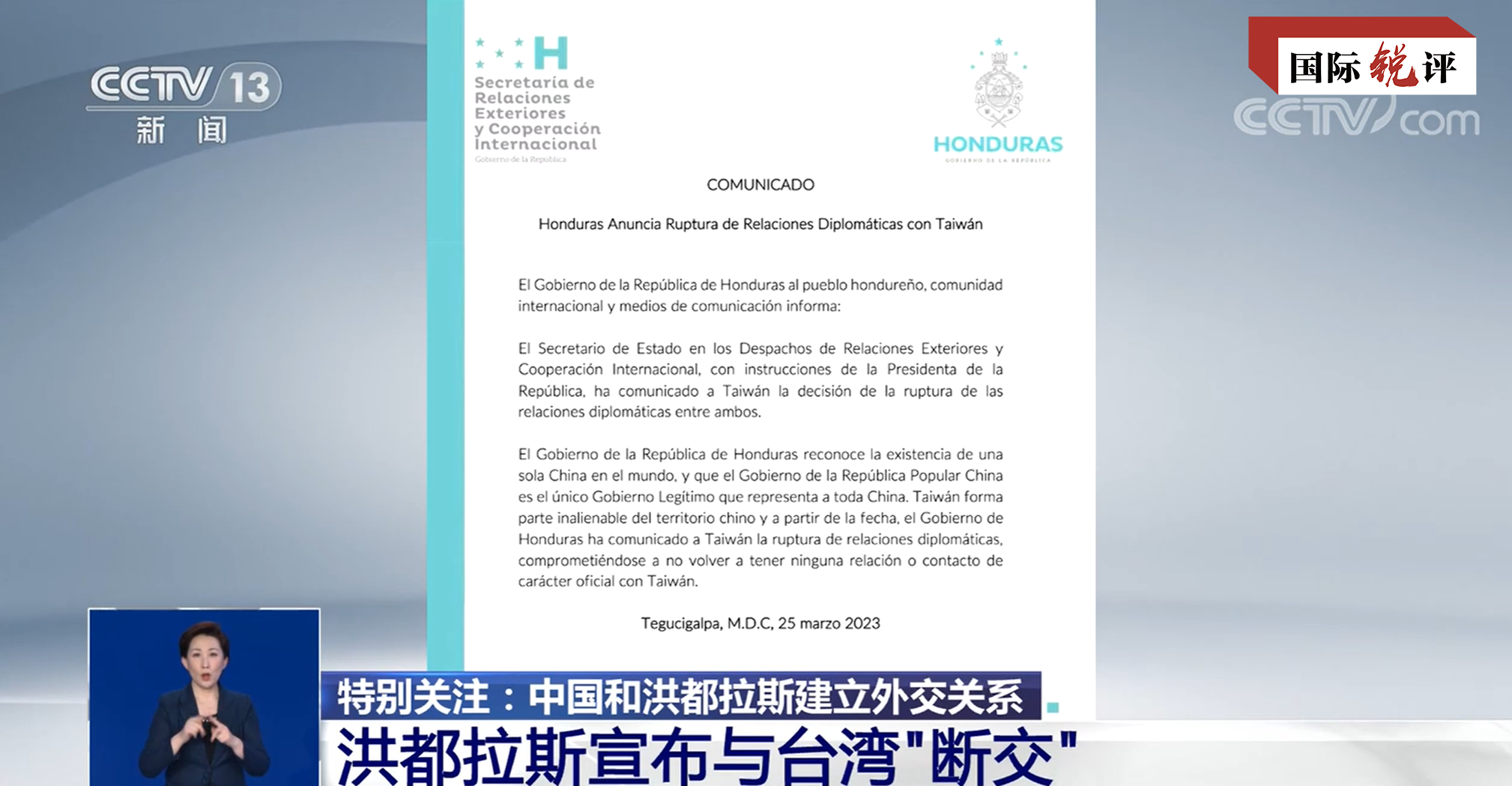 | 国际锐评丨中洪建交再次证明坚持一个中国原则是国际大义 | |