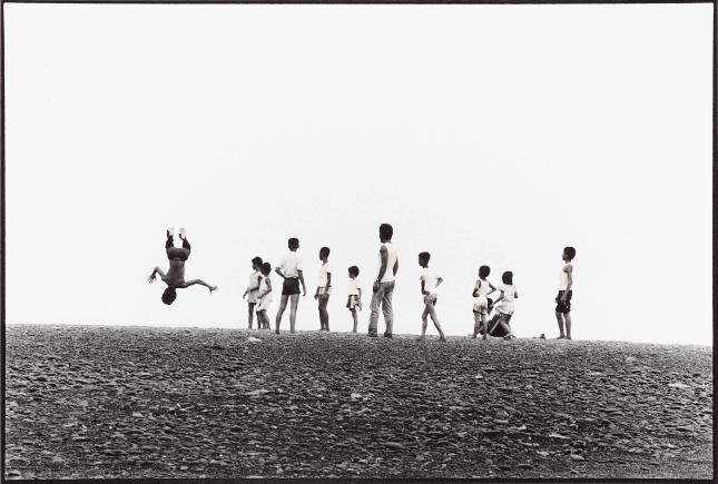 阮义忠的记忆里,在旭海所拍的《老天给的礼物》是整个展览中难度最大的。一排村民在比赛,看谁的觔斗能翻最多次。一件极其平凡的事件,却让他直觉到它的深刻寓意:人类在土地上重复着“生、老、病、死”的轮回,累积着贪、瞋、痴、慢、疑,却一同注目着颠倒人生,毫无所觉。阮义忠攫住了一个永恒的瞬间。他笑言,曾有朋友调侃:“这张照片是上帝替你按的快门吧?”阮义忠回答:“没错,回首来时路,我拍到的所有好照片,包括镜头前一切人、事、物给我的启发,都是老天给我的礼物啊!”