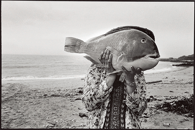 拍摄时,阮义忠始终信奉着一条原则:以最大的诚意尊重拍摄对象。1979年,他前往苗栗县三湾乡拍摄。这里岛屿北端的水埯村民生活环境比较艰苦,有句谚语“四代无尪,不通嫁水埯人”,大致意思是:四代嫁不了,也不嫁给水埯人。阮义忠到达时,几条小舢板正缓缓靠岸,妇人们冲上前去协助舢板抢滩,无奈渔获多是不肥不美、装不满箩筐的小鱼。其中唯一的珍奇便是一尾色彩艳丽、体形硕大的鹦鹉鱼。只见一位妇人像抱婴儿般地把它兜在怀里,阮义忠赶紧举起相机,谁知妇人的动作比他更快,马上就把鱼捧上来挡住了脸,说:“拍鱼就好了,不要拍我!”在看到最终呈现的效果后,阮义忠感叹:“这帧充满超现实意境的作品,导演是她,我只不过按了快门。”