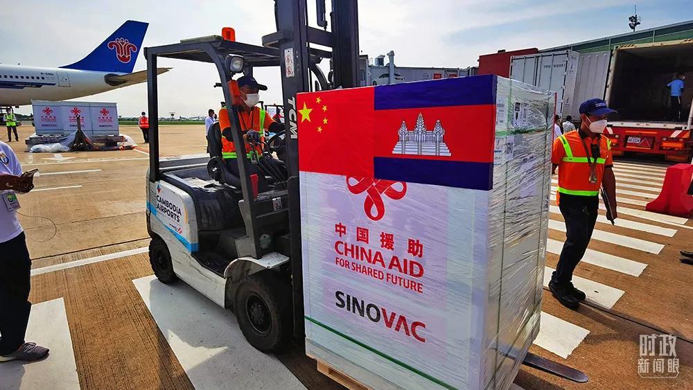 △2021年11月17日,柬埔寨金边,中国援柬第七批新冠疫苗运抵。(图/视觉中国)
