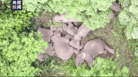 背后,却有很多人在为它们“保驾护航”:天上有无人机监控,全天候跟踪象群轨迹;地面提前疏通道路、疏散人群,防止象群进入人群密集社区;受伤落单的小象还会被迅速送到亚洲象救助中心……