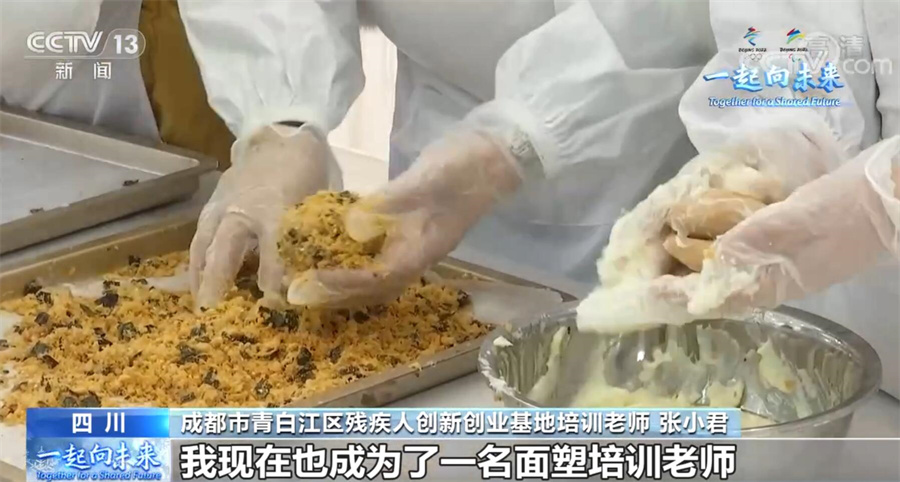 四川省成都市青白江区残疾人创新创业基地培训老师 张小君:通过联盟组织的非遗面塑培训,我学到了一门技能,也认识了更多的朋友,通过不懈努力,我现在也成了一名面塑培训老师,我愿意把我学到的技能教给更多的残疾人朋友,让他们学到一技之长。