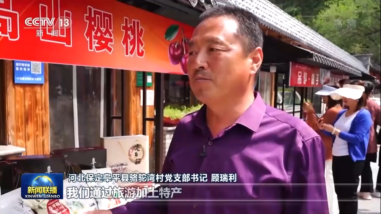 仲夏时节,大山深处的阜平县骆驼湾村一派勃勃生机。趁着端午假期,骆驼湾村的大戏台上,村民们搞起线上直播农旅团购会,集中展示当地的特色农副产品,同时还推介特色旅游。