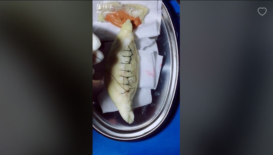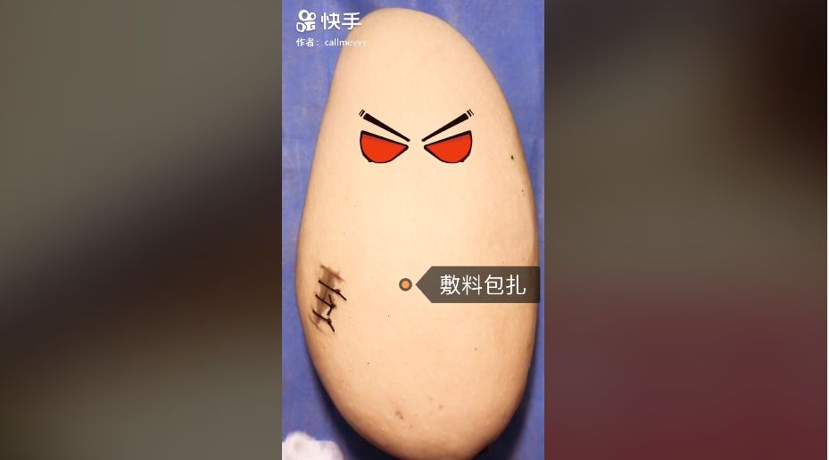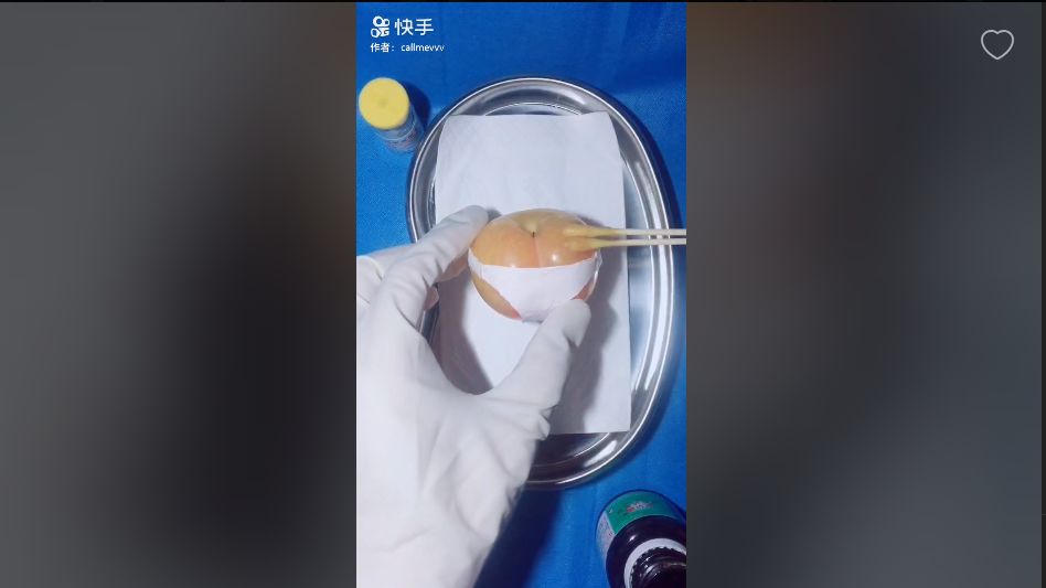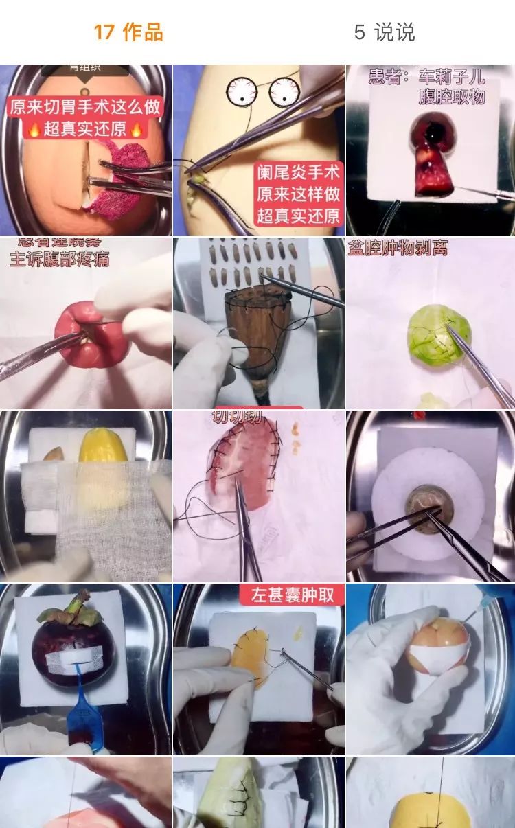 做手术不仅局限在水果上,王医生还给鸡蛋,鹌鹑蛋做手术,在薄脆的蛋壳上小心翼翼地操作,将蛋膜完整地揭开并进行缝合,手法十分娴熟,每个视频播放量都在百万以上。