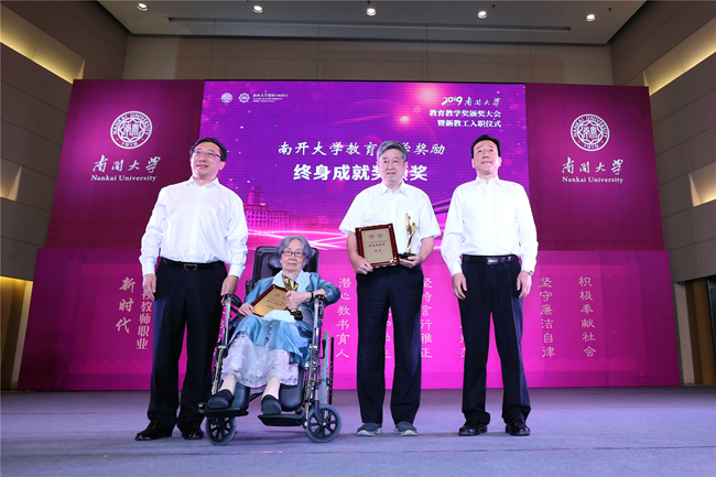 9月10日,南开大学颁发学校的首届教育教学奖,今年,学校出资500万元重奖名师。今后,“南开大学教育教学奖”每年评选一次。终身成就奖颁给南开园中的大师,他们具有成熟的教育理念和深厚的教学功底,为学校教育教学事业和中国高等教育发展做出了彪炳史册的贡献,他们是每个南开师生心中敬仰的楷模和榜样。南开大学教师叶嘉莹、顾沛获得南开大学教育教学终身成就奖,各获奖金100万元人民币。