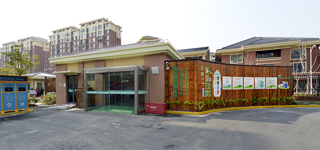 在陈家镇裕安社区公建配套16期里,有一栋特殊的一层建筑,它的风格与小区建筑融为一体,从外表根本看不出和周围环境有何不同,但这栋建筑是崇明区第一处建在居民区的湿垃圾处理站。