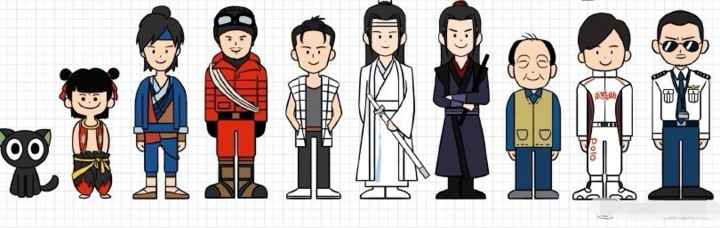 这些人物中包括了哪吒、小北、蓝忘机、魏无羡、苏大强等,他们有的来自动画片,有的来自青春片,有的来自仙侠剧,有的来自生活剧,年龄横跨老、中、青、幼,甚至还有小动物。